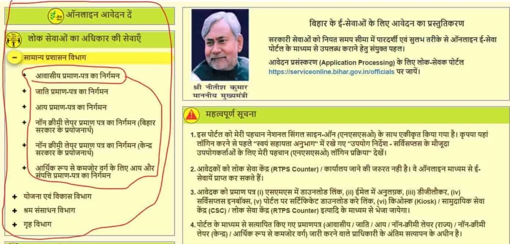 दोस्तों अगर आप बिहार राज्य के अस्थाई निवासी है तो Bihar RTPS Portal से आप विभिन्न सारे कार्य को कर सकते हैं जैसे आप ने जाति आवासीय,आय प्रमाण पत्र को बना सकते हैं साथ ही आप OBC,EWS Certificate को बना सकते हैं जन्म प्रमाण पत्र को बना सकते हैं,मृत्यु प्रमाण पत्र को बना सकते हैं वृद्धा पेंशन का लाभ आप इस पोर्टल से ले सकते हैं ऐसे कई सारे सर्विस पोर्टल पर जोड़े गए हैं जो आम नागरिकों के लिए काफी लाभदायक और कल्याणकारी है